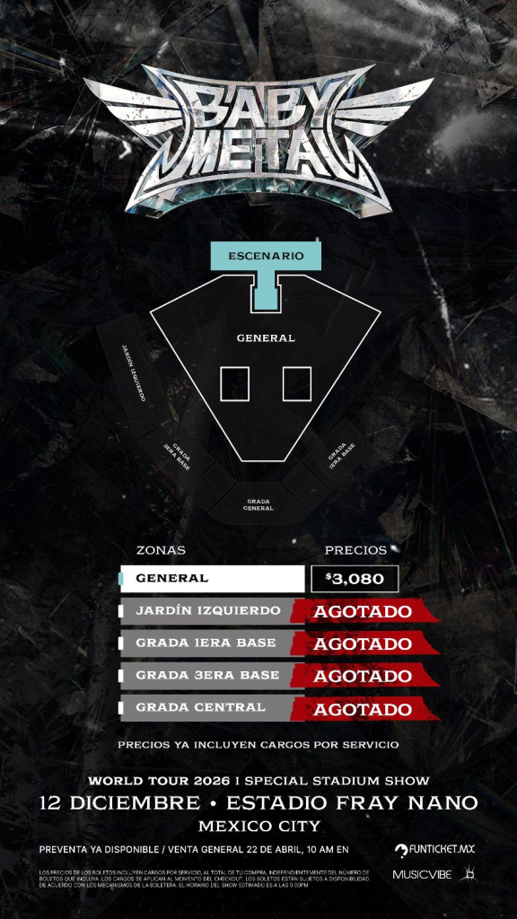 Tras su paso por importantes festivales y escenarios alrededor del mundo, BABYMETAL continúa expandiendo su universo sonoro con nuevas canciones y un espectáculo que promete llevar la intensidad a otro nivel. Su presentación en la Ciudad de México será parte de una gira global que reafirma su alcance internacional y la lealtad de una base de fans que no deja de crecer.