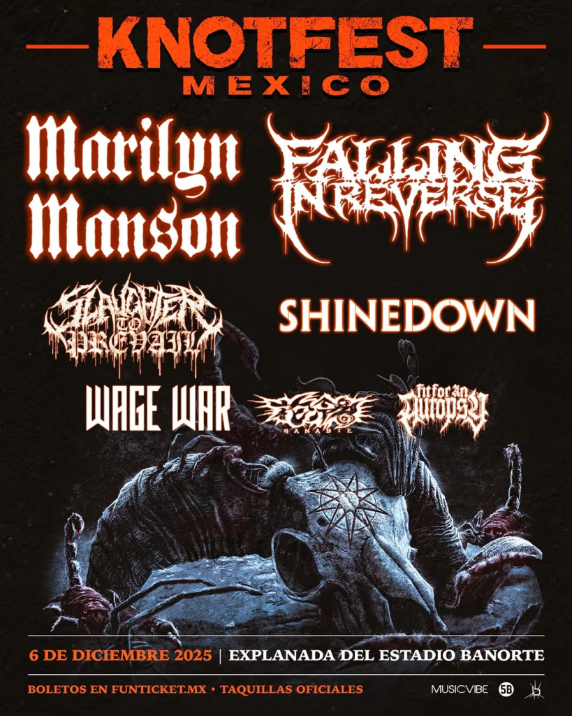 Pero la historia no acaba ahí. El 6 de diciembre, el rugido vuelve con el headliner Manson, la brutalidad de Alex Terrible y Slaughter To Prevail, además de bandotas como Wage War y falling In Reverse en el KNOTFEST MÉXICO 2025, una de las celebraciones más esperadas por la comunidad metalera.