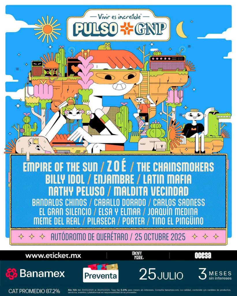 El Festival Pulso GNP 2025 ha revelado el cartel de su próxima edición y confirma que este 25 de octubre Querétaro será epicentro de una jornada musical inolvidable. Con un lineup que mezcla leyendas, propuestas emergentes y sonidos para todos los gustos, el festival se consolida como una de las fechas más esperadas del año.